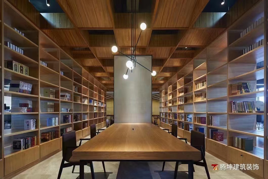 本次装修风格是深色原木风格,办公空间作为人们每日的工作场所,环境所带来的感觉意境非常的重要。温润的原木色调,干练的线条块面,不张扬,却自成一道风景。空间敞亮,洽谈区随意而有序摆放的家具,舒适且放松。会议室简洁原木屋顶,嵌入简约灯管,融合轻巧的桌椅设计,增添了静谧与书香气,帮助员工摆脱紧张的会议情绪,进行更行之有效的会议沟通和效率提升。各个区间隔墙也都由书架完成,开放式的布局不但保证了空间的采光与通透性,更能营造自由随性,放松自在的活动氛围。灯光融进书架、木纹,书本,仿佛思想可以游离,闪着智慧的光芒。