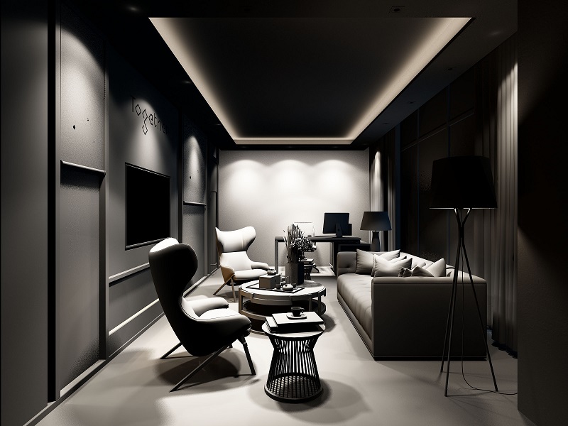 会客室在这里采用的是黑色调,这是一个大胆的尝试,但这也是一个很大的亮点,它突破了传统的束缚,给人一种新颖的感觉。