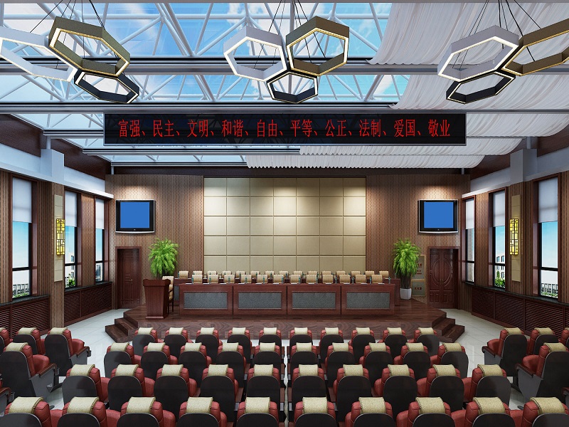 这是一个22列24排的超大型会议室,它可以一次性容纳500多个人同时开会,坐在下方能感受到场面的震撼,坐在主席台上,自豪感油然而生。