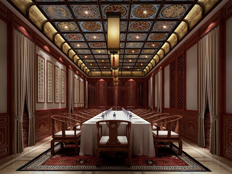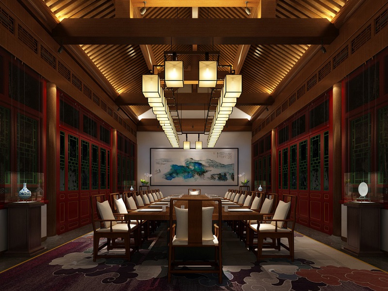 中式风格讲究纲常,讲究对称,以阴阳平衡概念调和室内生态。选用天然的装饰材料,运用“金、木、水、火、土”五种元素的组合规律来营造禅宗式的理性和宁静环境。