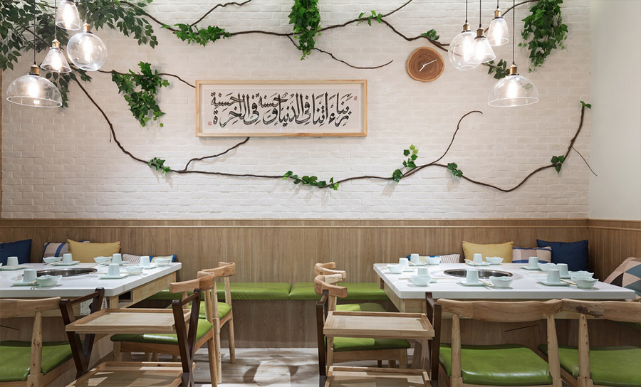 结合店面的经营形式和类型来规划功能,在设计设计过程中根据不同人群的就餐需求来划分为两人桌、四人桌、六人桌和多人桌,白色的餐桌更显简约和干净。合理运用空间资源,在装修的时候就先考虑到怎样使顾客就餐更加的方便,为了合理运用好每一寸空间,做好不同功能的分区,做好每一个餐位的规划,以及每一个餐位的距离,等等等等,使得顾客的就餐体验更加舒适方便。火锅店装修设计的气氛是非常重要的,餐厅颜色设计中带一些清新明亮的感觉,吊灯采用独特的造型,像洁白的羊毛,既贴合火锅主题,又烘托了氛围。