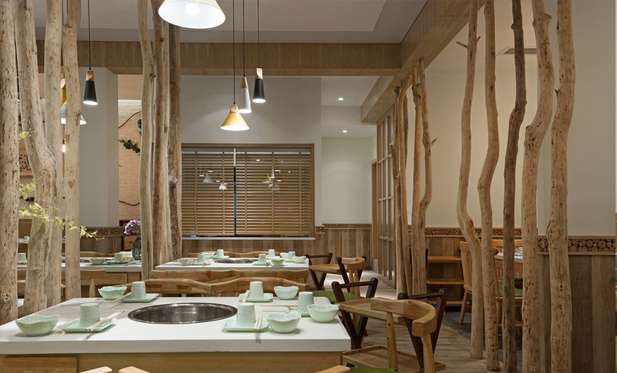 原木风火锅店装修案例