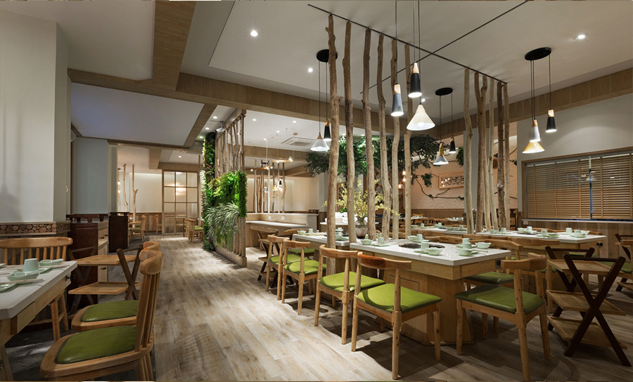 本次装修风格和大多数火锅店风格相比都显得清新脱俗,采用的是简约原木风设计,原木风格是近几年比较流行的装修风格,它的主要特点就是大面积使用原木色,让人时时刻刻感受到木材带给我们的大自然气息,木质的感觉总是让人觉得踏实好用,简单不失淡雅、清新、自然。简约的装修让火锅店有种耳目一新的感觉,没有了中式的厚重,似乎连火锅都清新了起来。在商场里,更吸引年轻人的眼光,清新的设计也更容易让人忽略吃完火锅沾上的一身“火锅味”。