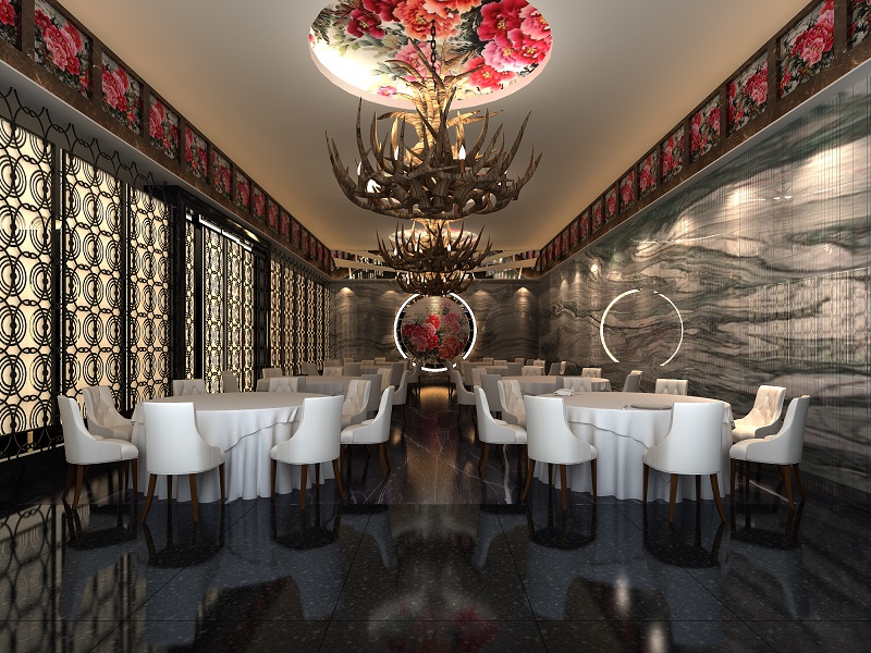本案餐厅整体的设计风格以现代时尚风为主,辅以传统的东方主义来营造出整体的东方气韵。