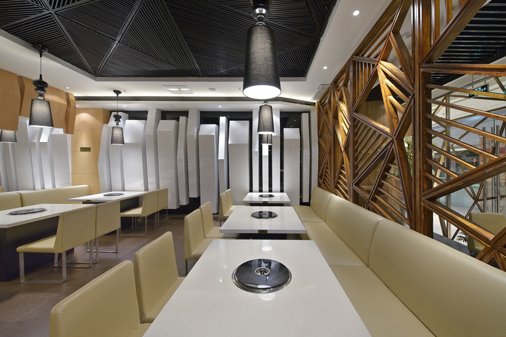 本案例是一个很有特色的中式餐厅,到底特色在哪里呢? 设计师将整个店面设