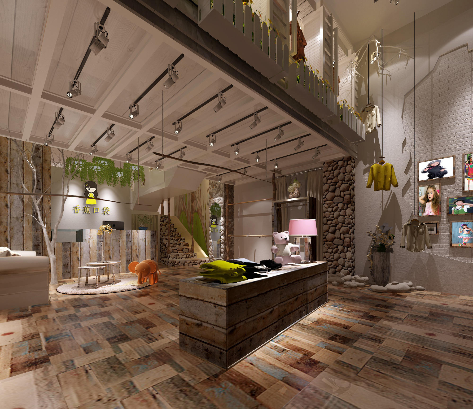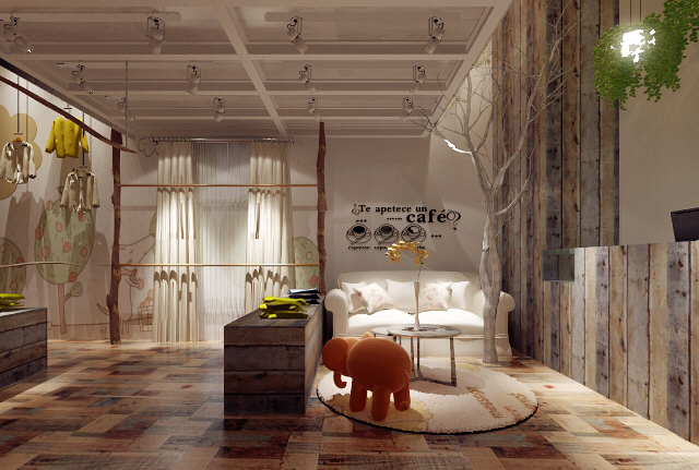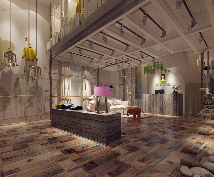 本次装修风格是依据店主的儿童服装店,这种装修风格主要是以浅木调的木质材料,不管是在地板的装修还是衣架上面,使用的材质都是浅色木的木质材料,搭配上小孩子都喜欢的装饰品,整个风格的感觉就出来了,墙面不需要过多的装饰都已经足够吸引人了。这种小清新的装修风格最适合于孩子,他们正处于天真烂漫的时候,很容易被这些吸引。