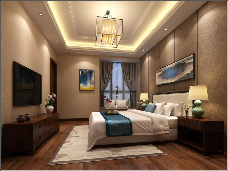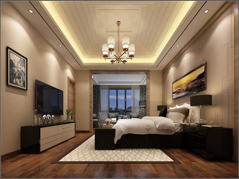 主卧的空间是宽阔的,电视机旁的壁画和床后墙上的壁画无疑是整个房间最好的点缀。