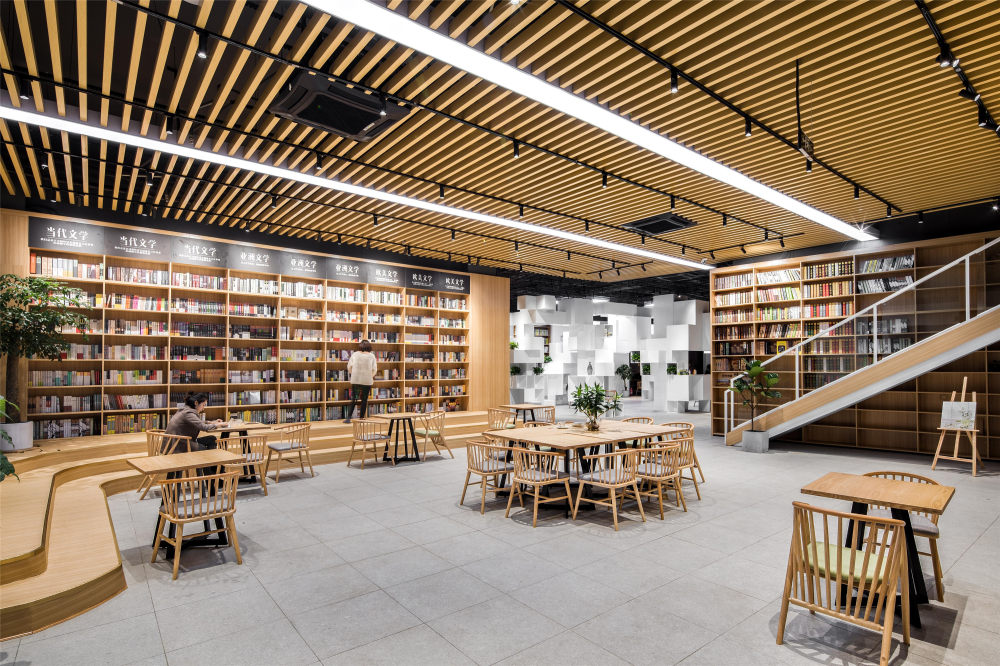 原木风格最大的特点作为一种比较受欢迎的装修风格,原木风注重简约自然的配色,为当时场景氛围增添了明亮、温馨的氛围,让人在更需要投入身心的书店更加专心放松。