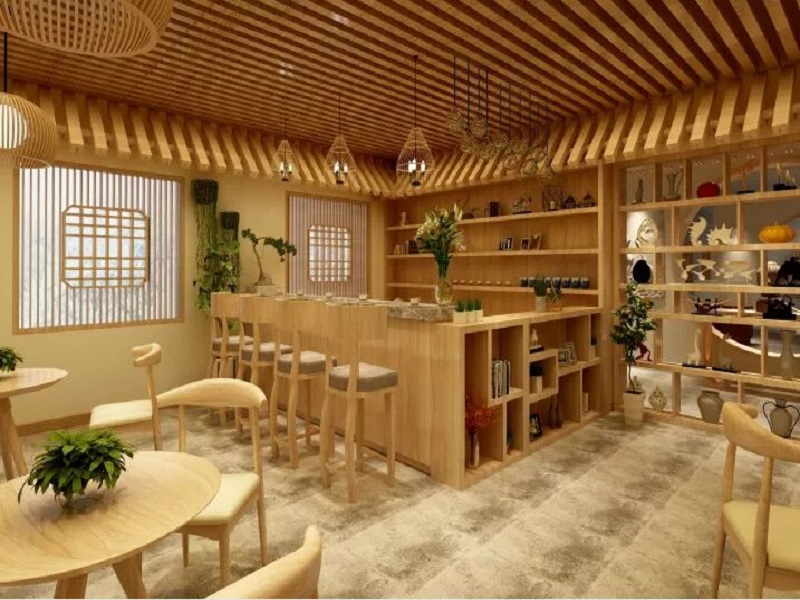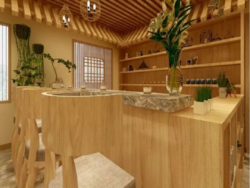 这是一个中式元素的小图书馆,它重点采用了原木元素,焕发了整个图书馆浓重的文化气息。