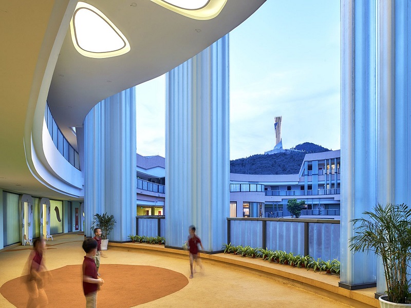 建筑色彩从年代久远的当地民居中提取了一种淡淡的暖色,更适合儿童的心理需求。这样,从空间的组织、建筑的材质、细节和色彩都以幼儿真实的心理需求为导向,希望海亮国际幼儿园成为孩子们喜欢的欢乐天堂。