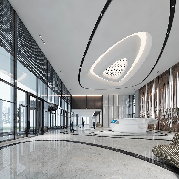 整个写字楼有多个功能区,大堂、走廊、接待区、电梯间等,这些区域一个也不能忽视,因为写字楼就是整体的体现,它间接的体现出了公司的实力。