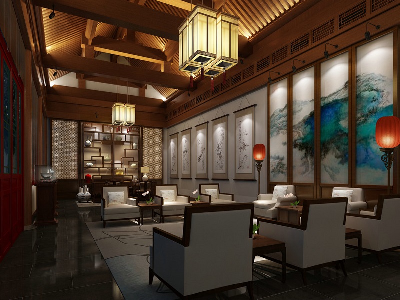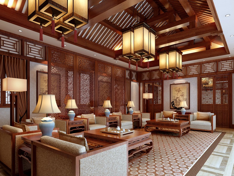 中式风格讲究纲常,讲究对称,以阴阳平衡概念调和室内生态。选用天然的装饰材料,运用“金、木、水、火、土”五种元素的组合规律来营造禅宗式的理性和宁静环境。