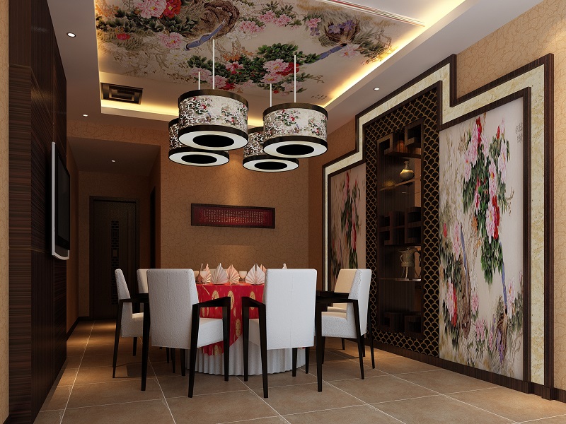 本案餐厅整体的设计风格以现代时尚风为主,辅以传统的东方主义来营造出整体的东方气韵。