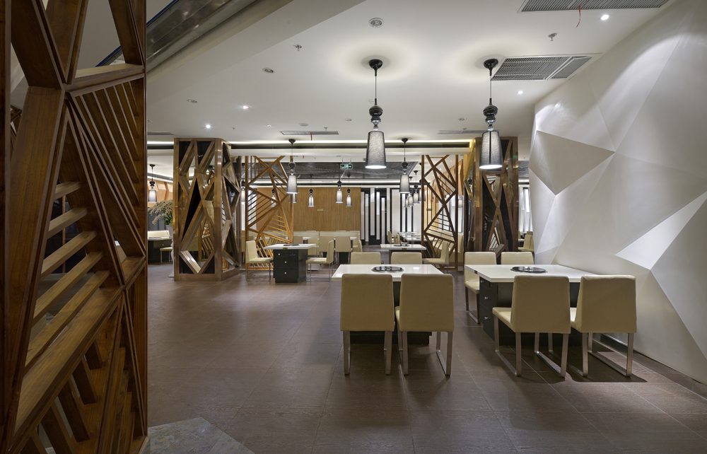 本案例是一个很有特色的中式餐厅,到底特色在哪里呢? 设计师将整个店面设