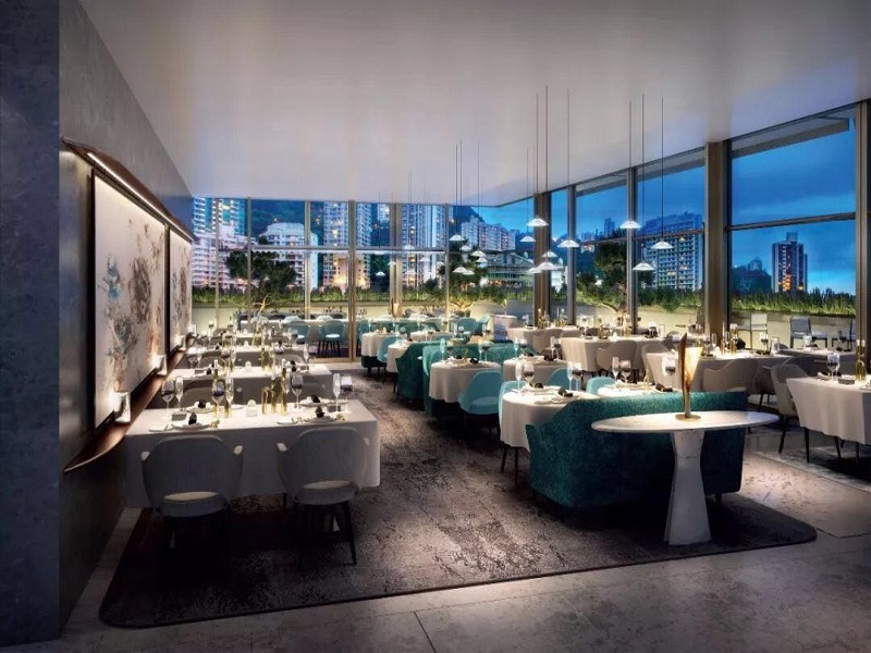 酒店的餐厅位于酒店顶层,在享受各色小食、香茗和美酒的同时又能观赏美丽的风景。