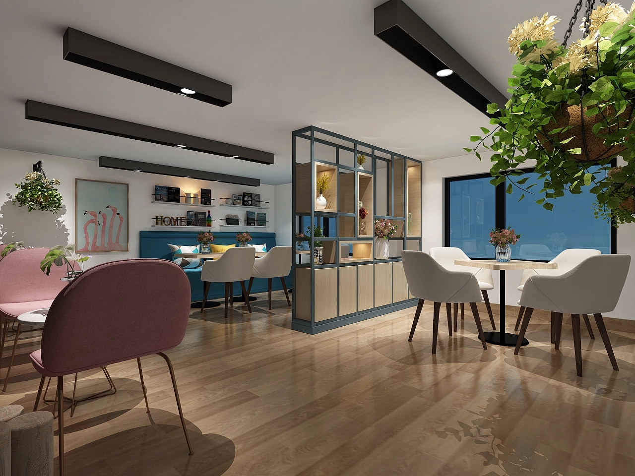 本次装修风是现代化的简约风格,根据业主想要的花店与茶的结合去用简约风最大化突出想表现的特点,· 奶茶+花坊作为花店结合餐饮形式的一家多元化餐厅,希望能在喧嚣的城市中打造一处隐于市的“世外桃源”。快节奏的生活方式使得身处其中的人们愈发迫切的寻求一片可以慢下来享受生活的净土,以安抚自身燥动的灵魂。