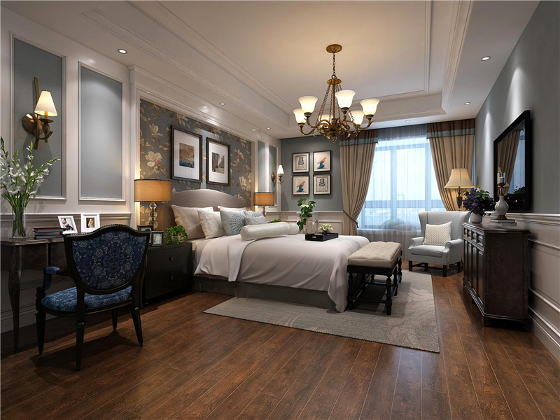 主卧的设计比较丰富,设计师运用了大量的壁饰还有盆栽,让整个房间显得生机勃勃。