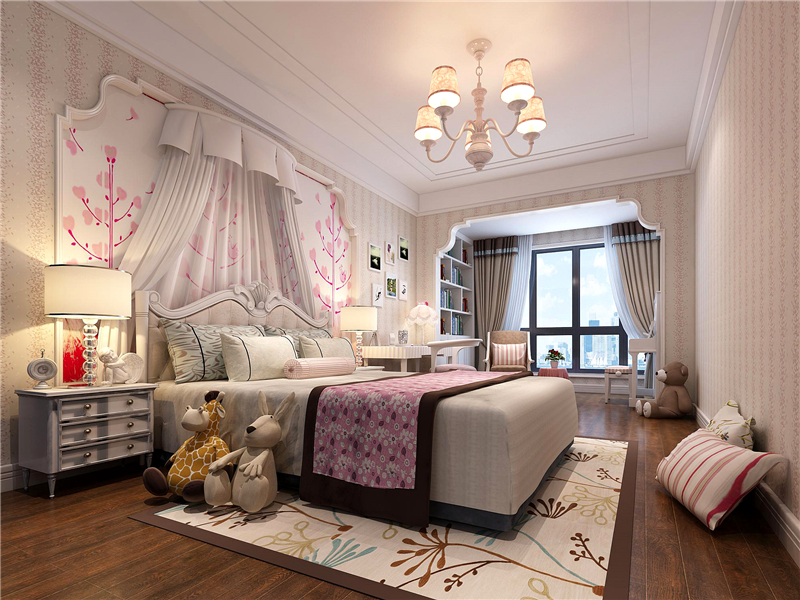 设计师在女儿房的设计上选择采用粉色,粉色是大部分女孩子喜欢的颜色,也说明了业主的女儿有一颗慢慢的少女心。