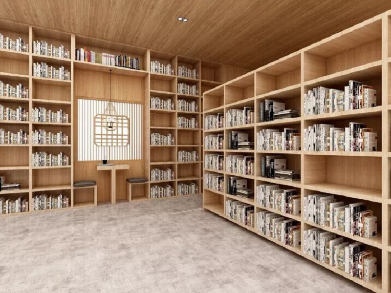 这是一个中式元素的小图书馆,它重点采用了原木元素,焕发了整个图书馆浓重的文化气息。