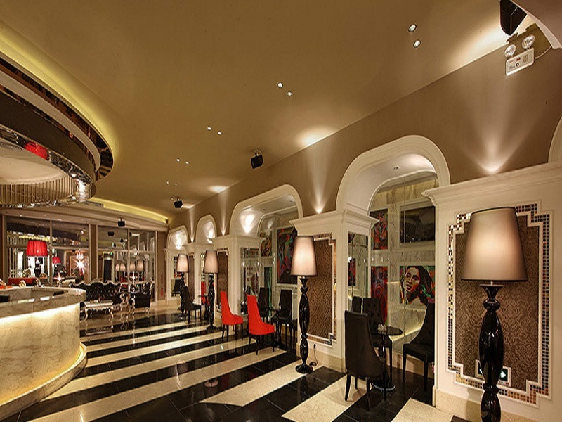 进入二楼大堂之后,你的眼睛会被一座巨大造型体所吸引,该造型是由我们的设计师直接利用原有结构柱体为中心构造而成,形成整个大堂空间的视觉中央。而在皇冠之下,便是充满个性特色的酒水吧、等待区、收银台等功能区。