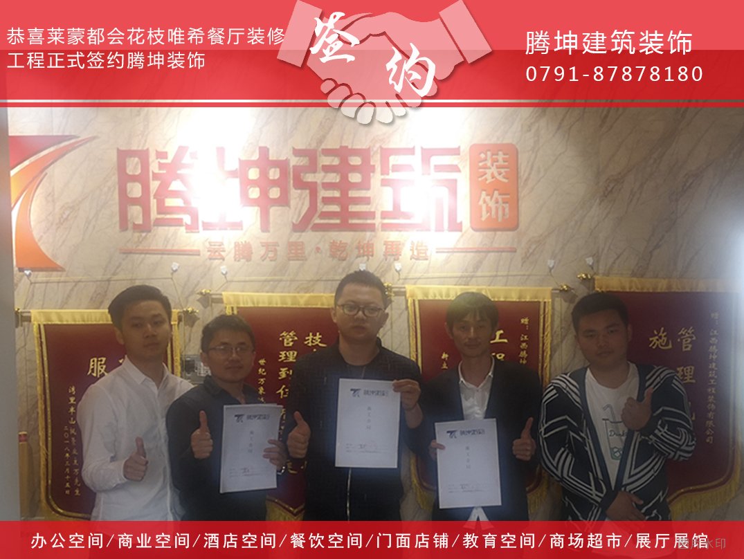 恭喜莱蒙都会花枝唯希餐厅装修工程签约腾坤装饰