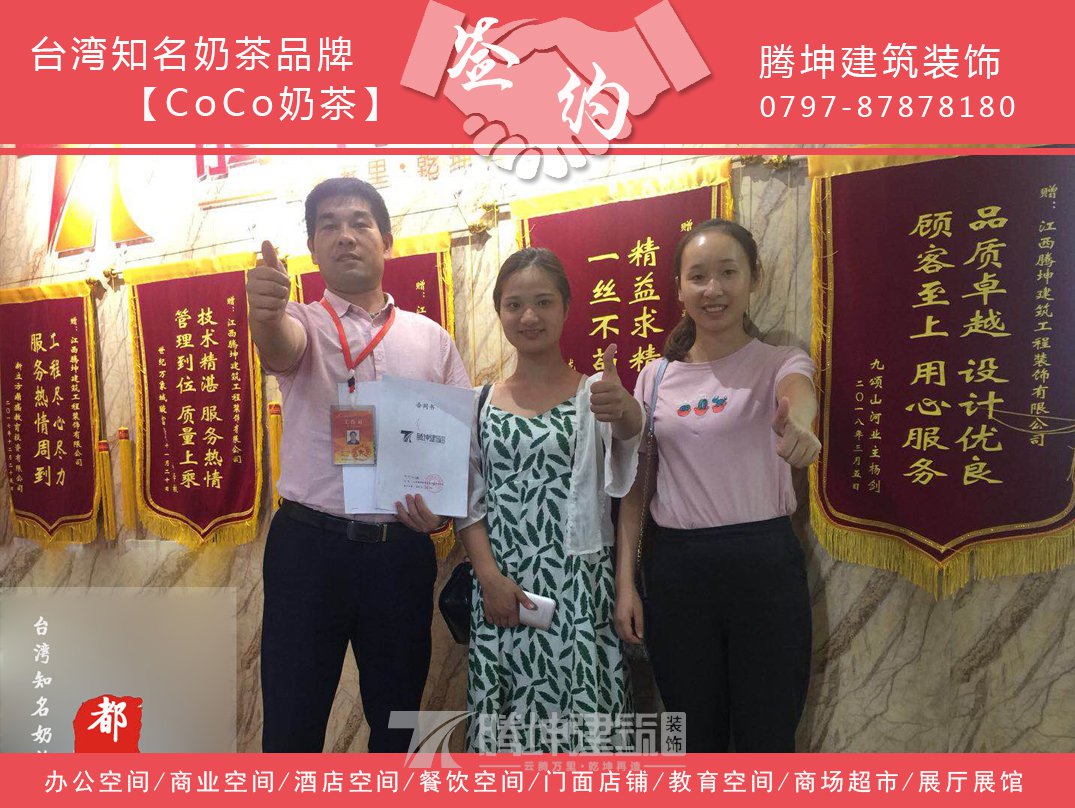 关键词: 办公室写字楼装修 、 商场店铺装修 、 酒店宾馆装修 、 餐饮茶楼装修 、 家居别墅装修 、 会所网咖装修 、 南昌奶茶店装修签约-CoCo奶茶店、
